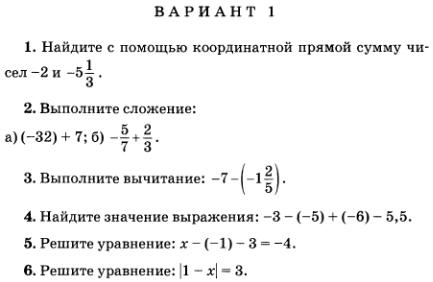 Контрольная работа по математике 6 класс - Сложение чисел с помощью координатной прямой