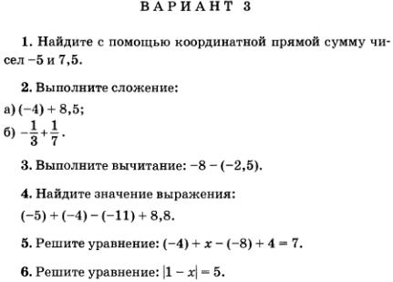 Контрольная работа - математика 6 класс - Сложение отрицательных чисел.