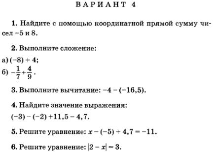 Контрольная работа - математика 6 класс - Сложение чисел с разными знаками.