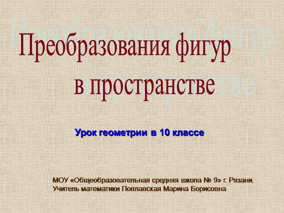 Презентация по геометрии 10 класс: Преобразования фигур в пространстве