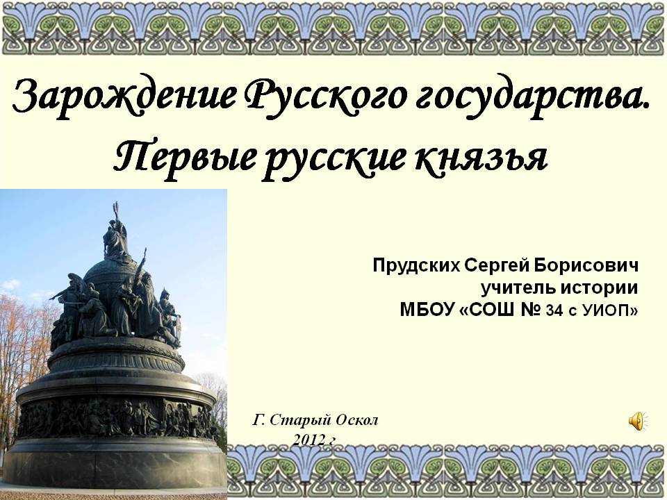 Презентация по истории 6 класс, - Зарождение Русского государства. Первые русские князья.