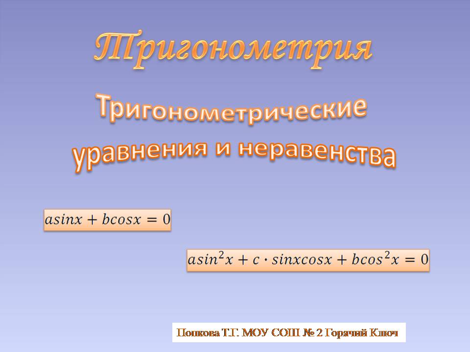 Презентация по алгебре: Тригонометрические уравнения, неравенства