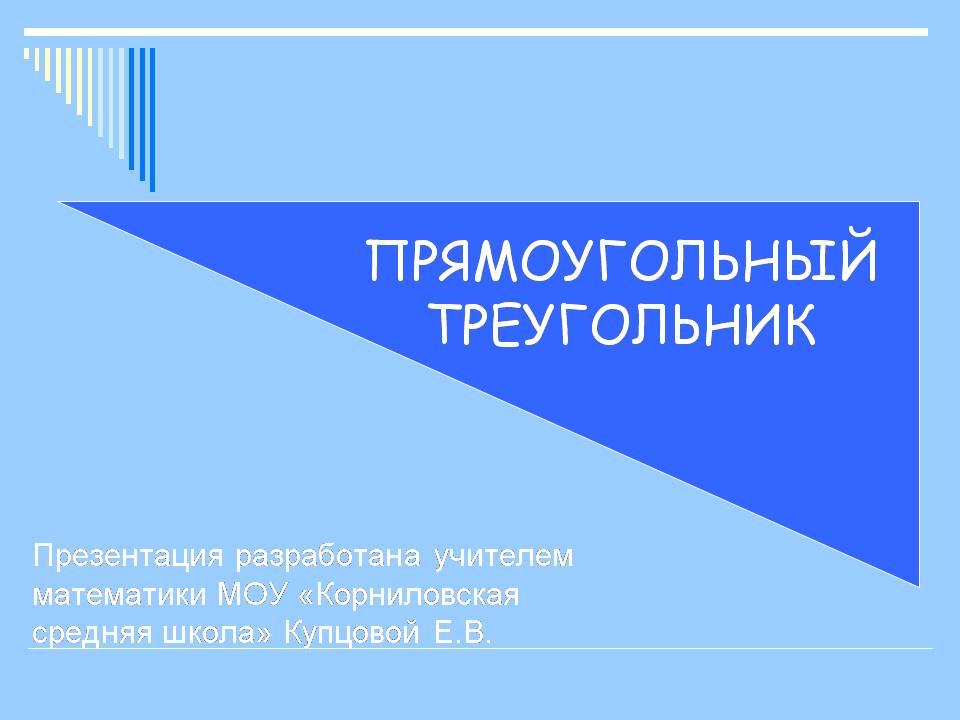 Презентация по геометрии 7 класс: Прямоугольный треугольник