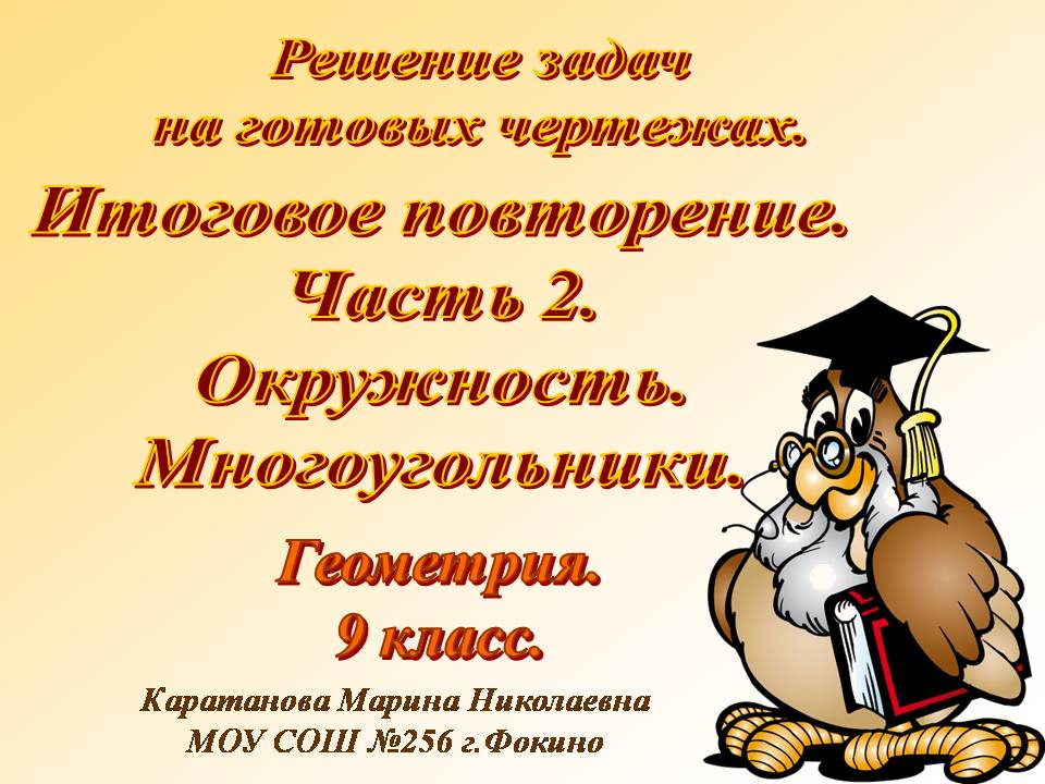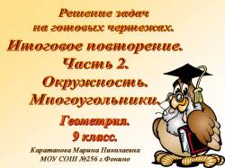 Презентация по геометрии 9 класс: Задачи на окружность, многоугольники