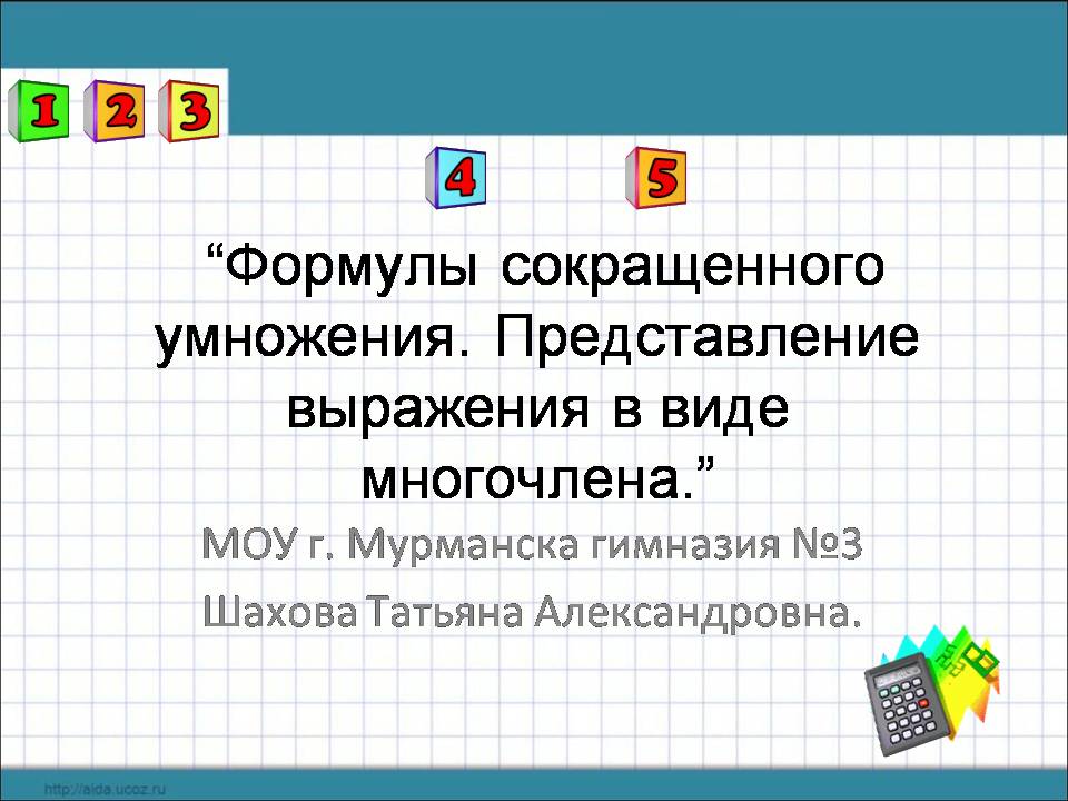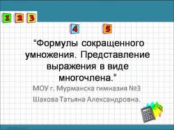 Презентация по математике: Формулы сокращенного умножения, многочлены