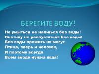 Презентация снабжена компактной и достаточно подробной картой мира, на которой обозначены названия океанов и материков. Простые и подробные формулировки вопросов игровой презентации «Берегите воду» будут понятны даже самым маленьким эрудитам.
