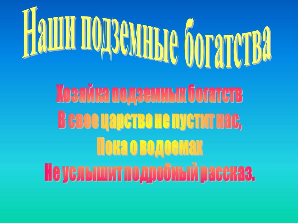 Детям будет рассказано не только о том, какие существуют природные ископаемые и на какие группы они делятся, но и помочь вспомнит и ответить на такие вопросы что такое водоемы, какие водоемы они знают, какие методы применяются для борьбы с загрязнением воды. Скачав, «Наши подземные богатства» можно подробно объяснить детям о всех благах, которые дает природа в виде полезных ископаемых.