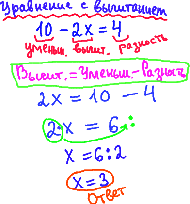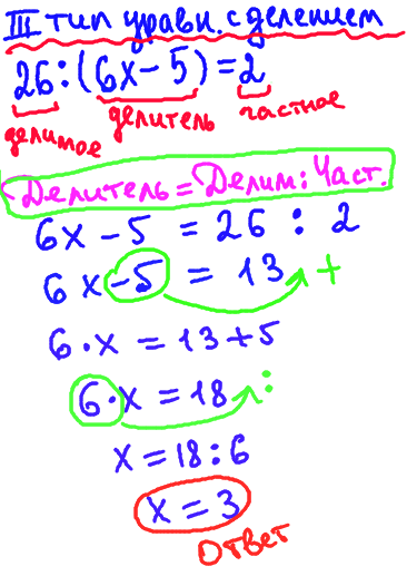 Самое главное правило - при переносе за знак "=" умножение заменяем на деление, а сложение на вычитание и наоборот (кроме случаев, когда неизвестным x является делитель и вычитаемое) .