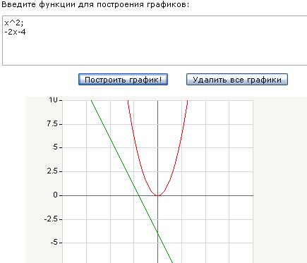 Функции необходимо вводить также, как функции введены в примере (Просмотреть пример построения графика Вы можете просто нажав кнопку - "Построить график"). Можно сразу строить график нескольких функций (Снова же опираясь на приведенный ниже пример графика функций).