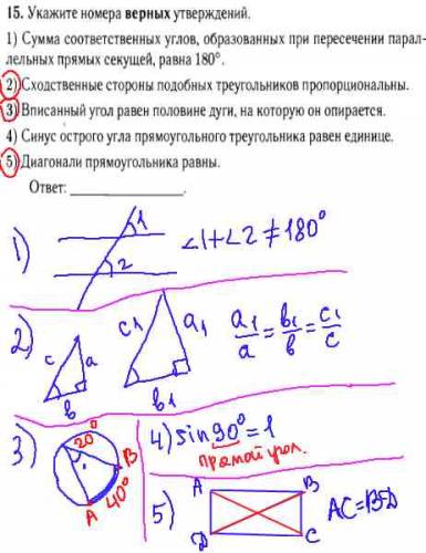 Выбрать верные утверждения - модуль Геометрия.