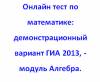 Онлайн тест по математике: демонстрационный вариант ГИА 2013, - модуль Алгебра.