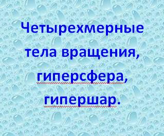 Презентация по геометрии 11 класс: четырехмерные тела вращения, гиперсфера, гипершар.