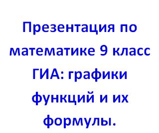 Презентация по математике 9 класс ГИА: графики функций и их формулы.