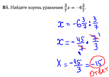 В данном задании ЕГЭ по математике B5 нужно решить обычное линейное уравнение 5-6 класса. Здесь мы 3/7 перебрасываем за знак равно с противоположным знаком делением. Затем по правилу, знак деления заменяем умножением, а дробь переворачиваем. В ответе получаем -15. Используйте разбор и решение задач ЕГЭ по математике для подготовки к экзамену 2013 года.