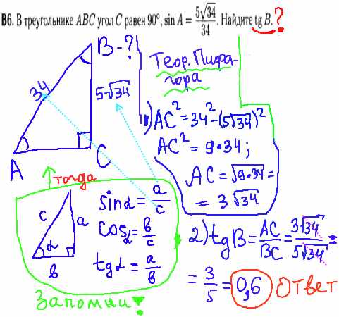 • Задача ЕГЭ B6: Синус и косинус угла треугольника.