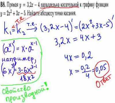 Решение задачи ЕГЭ по математике B8, угловой коэффициент касательной.