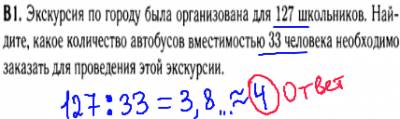 Задача решается в одно действие, просто делим количество школьников на вместимость автобуса, т.е. 127:33, получим примерно 3,8... - это значит, что по-любому, как минимум 4 автобуса понадобится.