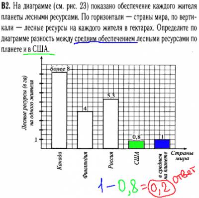 Здесь мы смотрим на рисунок, ищем нужные диаграммы и находим разность между большим и меньшим.