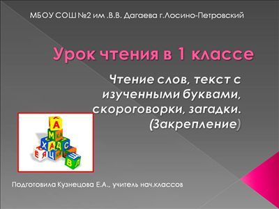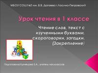 Скачать детскую презентацию - Чтение слов, текст с изученными буквами, скороговорки, загадки