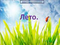 В ней представлено 23 слайда, на которых рассказывается о летних месяцах - июне, июле и августе, о том какие травы, растения и ягоды зацветают в это время года. Также в презентации для детей показывается животный мир, их повадки и поведение. Данная powerpoint презентация понравится многим ребятам, и пригодится учителям на уроках окружающего мира.