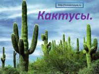 Также в детской презентации говорится о внешнем виде зеленого кактуса с иголками и его взаимоотношениях с водой.