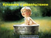 В ней ребятам рассказывается про пользу и значимость принятия ван и водных процедур, про соблюдение чистоты тела ребенка. В презентации есть стихи, которые помогут родителям уговорить детей купаться в ванне с мылом и пеной.