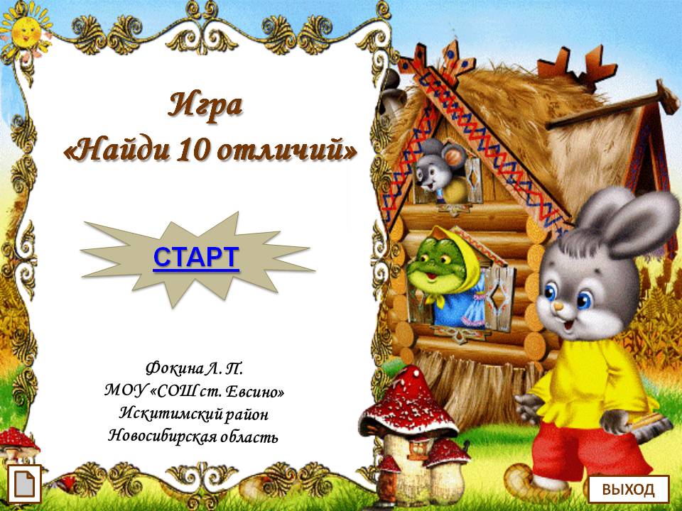Ребятам предлагаются 2 картинки из русской народной сказки Теремок, где им нужно найти десять отличий между ними. Благодаря детской презентации у детей формируется внимание, память и образное (зрительное) мышление.