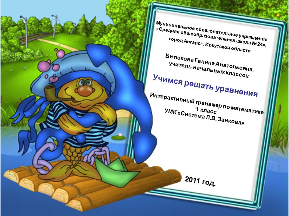 Презентация представлена в виде интерактивного тренажера по математике для учащихся 1 класса. Данная презентация поможет учащимся ознакомиться с помощью рисунков на морскую тематику - с понятиями: уменьшаемое, слагаемое, вычитаемое и, в дальнейшем, на математических примерах, научит детей легко решать уравнения