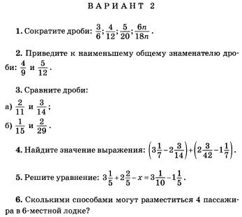 Контрольная работа по математике 6 класс: Дроби, смешанные числа