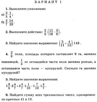 Контрольная работа по математике 6 класс: Умножение дробей