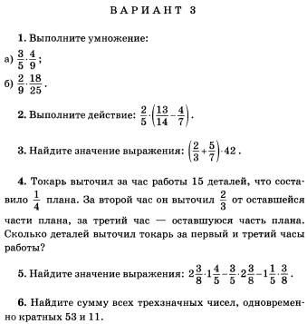 • Контрольная работа по математике 6 класс: Действия с дробями