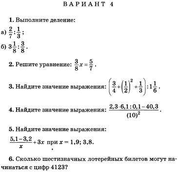 Контрольная работа по математике 6 класс: Дробные выражения, дроби, деление