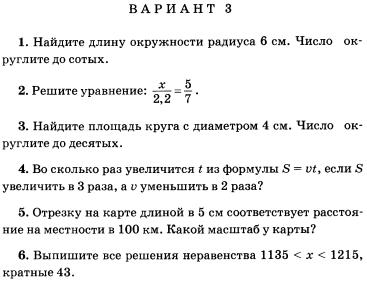 Контрольная работа по математике 6 класс: Длина окружности и площадь круга