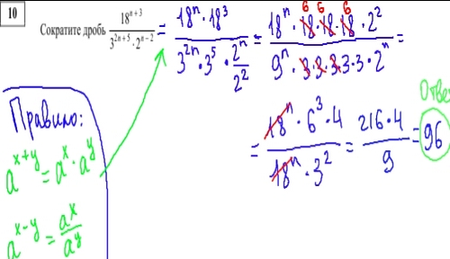Следующее задание принадлежит второй части ГИА по математике из модуля Алгебра. В нем нужно сократить дробь, используя свойства степеней.