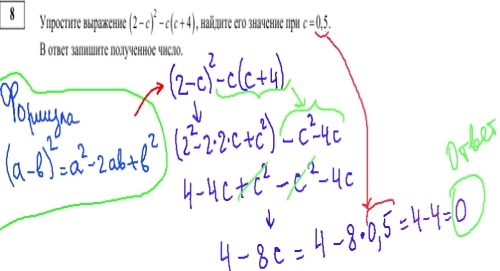 В задании 8 демонстрационного варианта ГИА по математике 2013 требуется упростить буквенное выражение, а затем найти его значение, для этого нужно знать формулы сокращенного умножения, в частности, формулу квадрата разности.