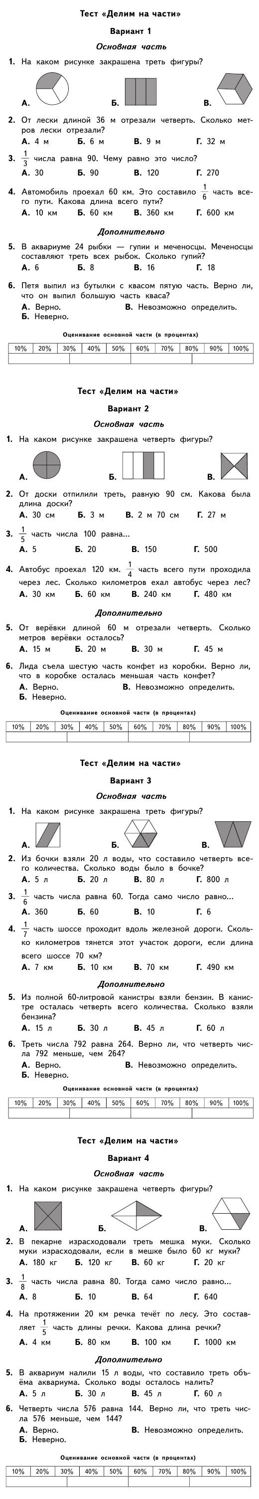 Тест по математике 3 класс - Делим на части