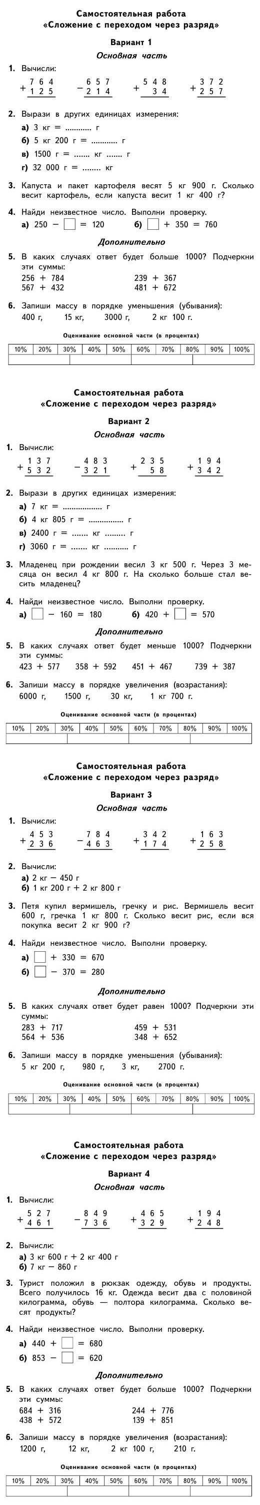 Самостоятельная работа по математике 3 класс - Сложение с переходом через разряд