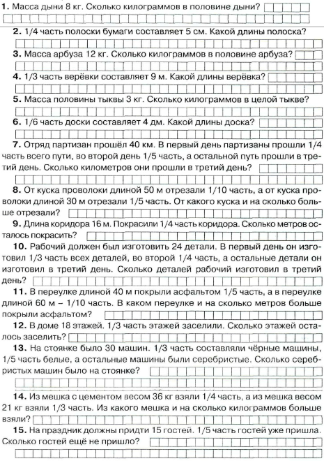 Математика 3 класс - Задачи на нахождение числа по доле и доли по числу